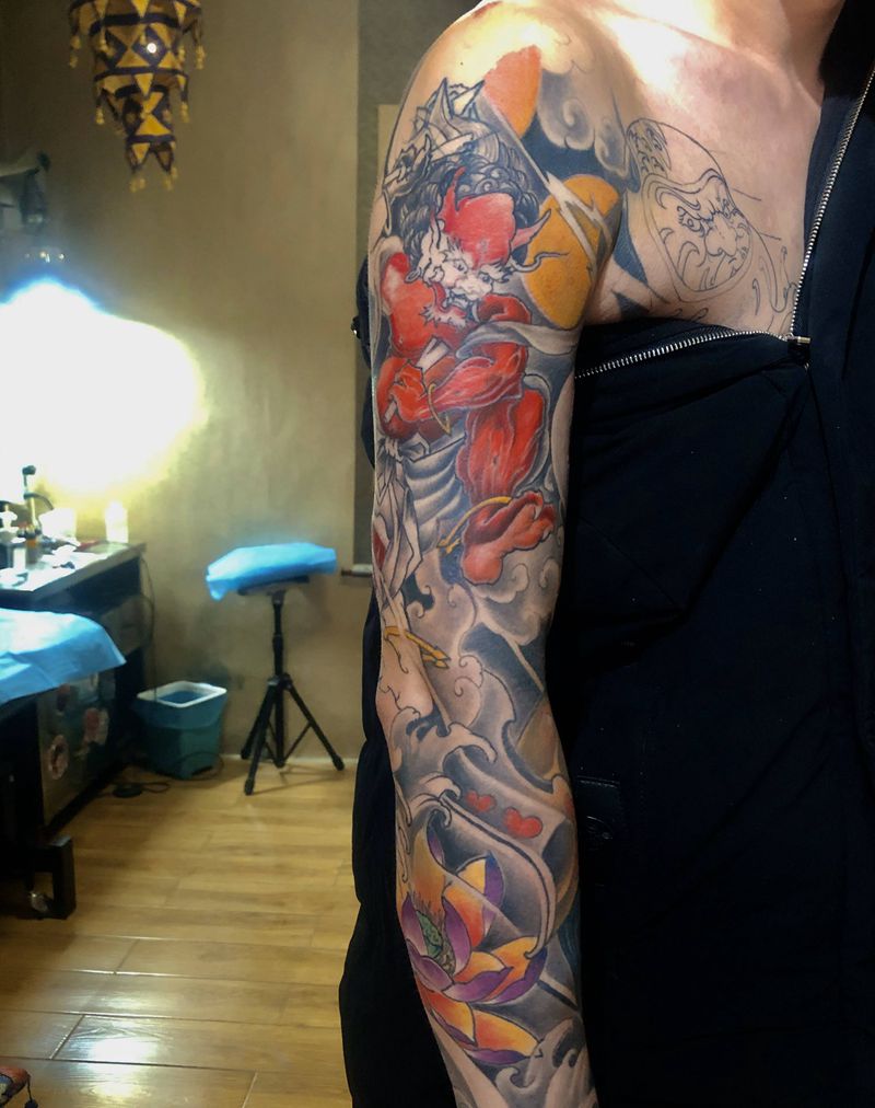 当前位置: 首页 >河北省邢台市纹身店-小黑刺青纹身专营店纹身图案>花臂未完成纹身图片_手臂纹身图案