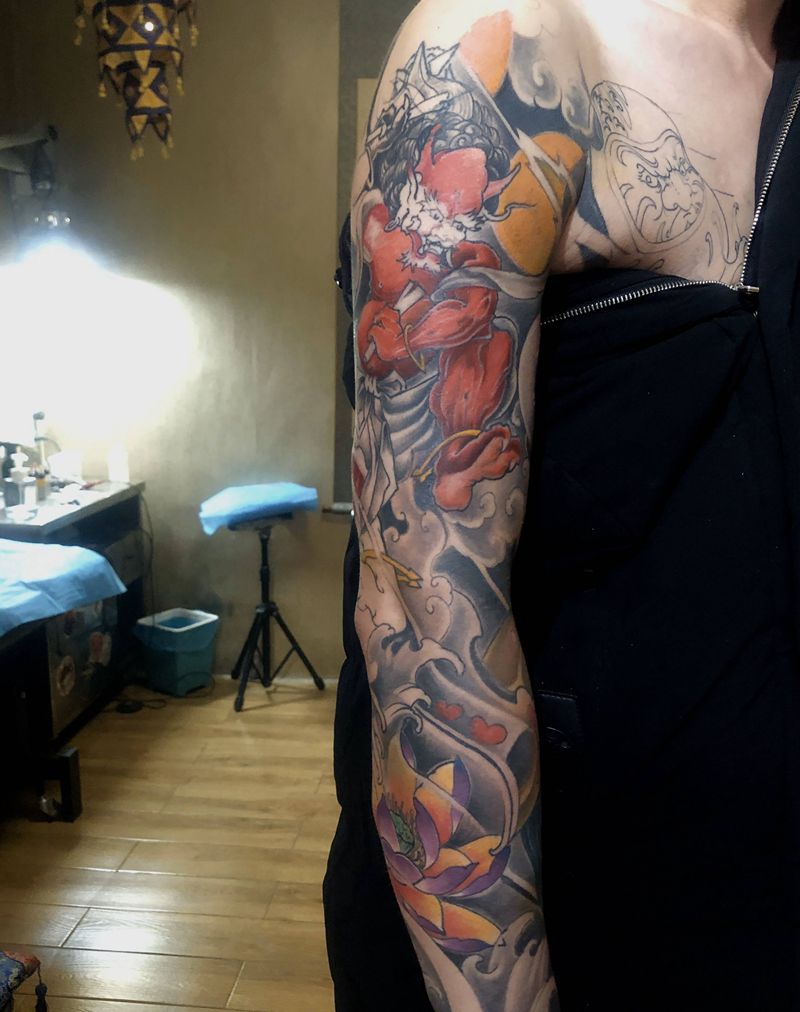 当前位置: 首页 >河北省邢台市纹身店-小黑刺青纹身专营店纹身图案>花臂未完成纹身图片_手臂纹身图案