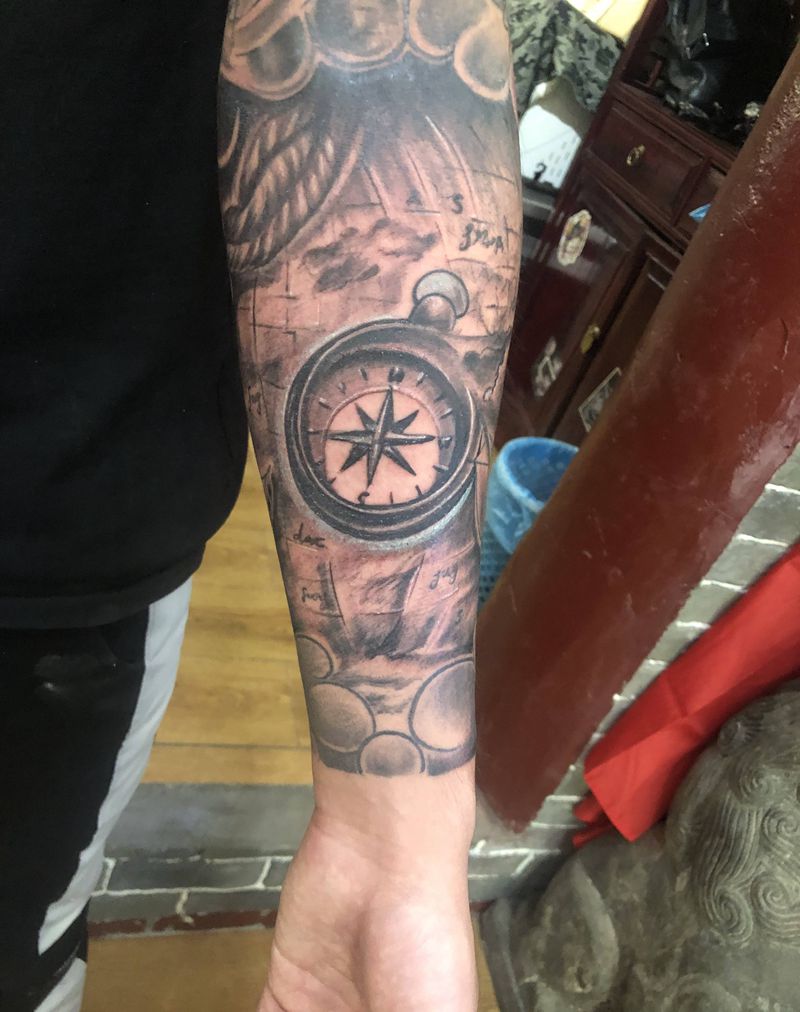 当前位置: 首页 >河北省邢台市纹身店-小黑刺青纹身专营店纹身图案>指南针纹身图片_手臂纹身图案