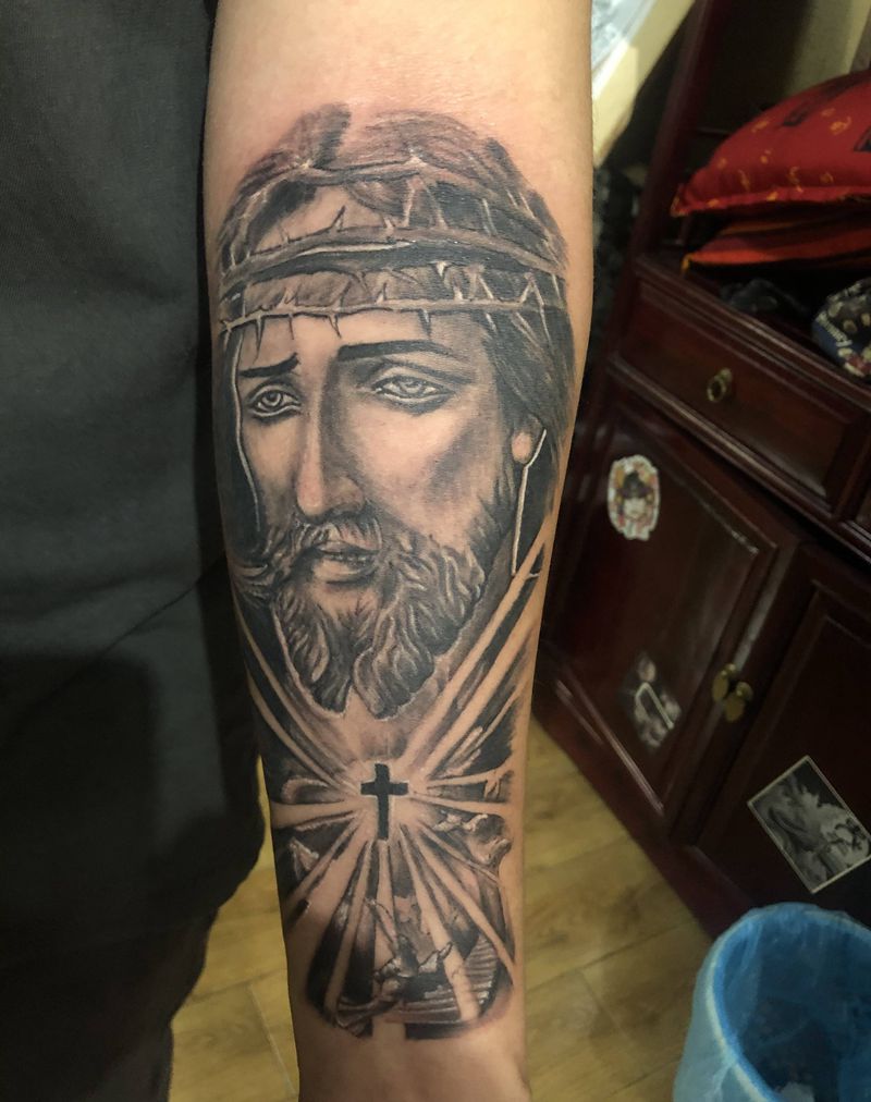 耶稣纹身图片_手臂纹身图案