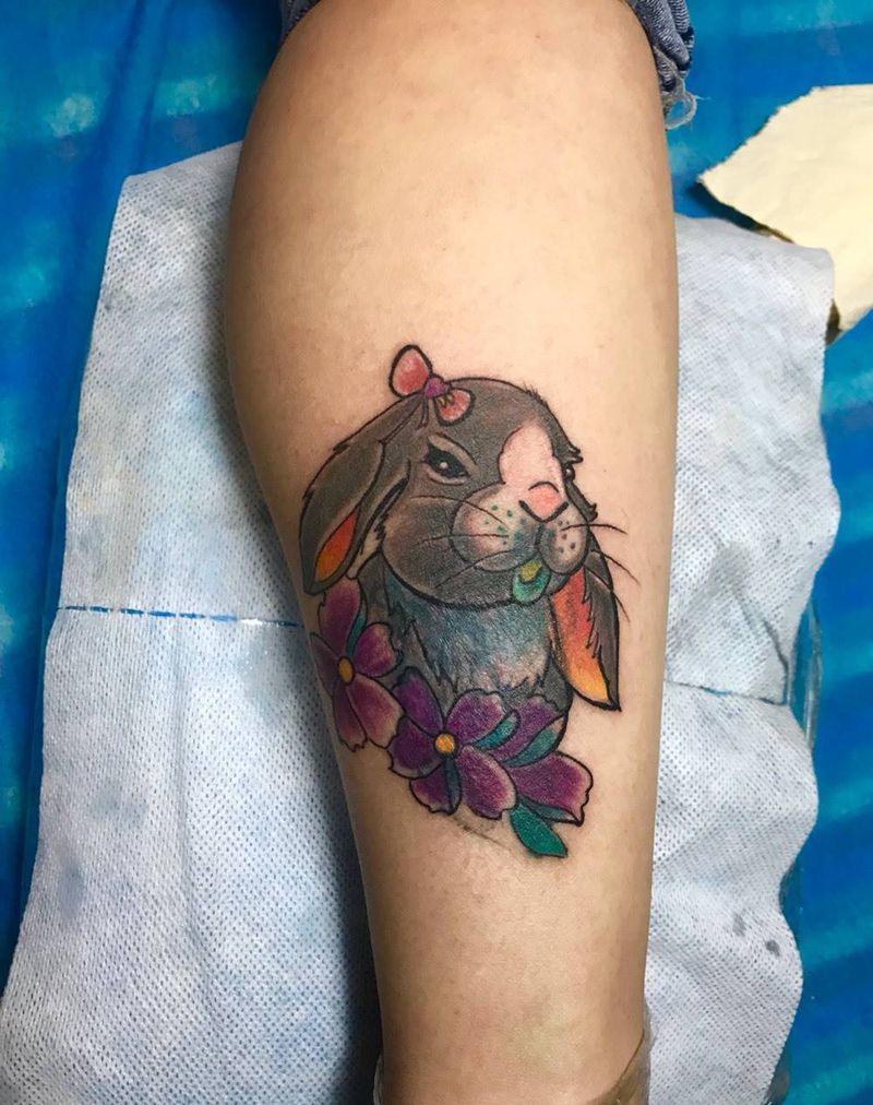 • T网红王老大花腿龙纹身图片_腿部新传统纹身图案