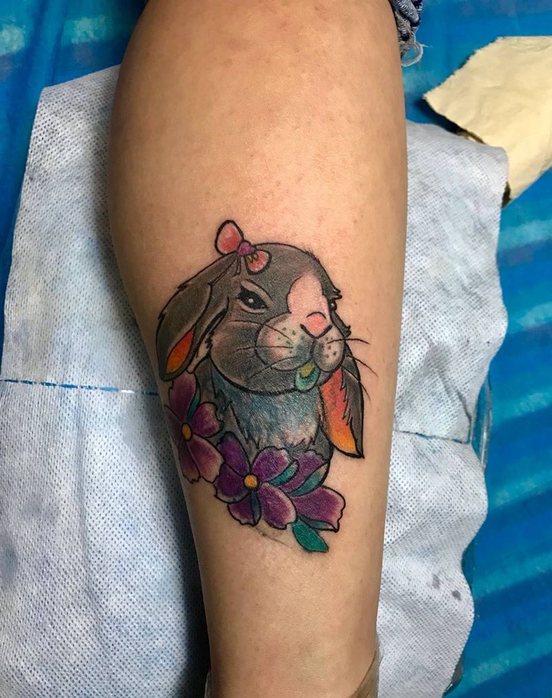 • T网红王老大花腿龙纹身图片_腿部新传统纹身图案