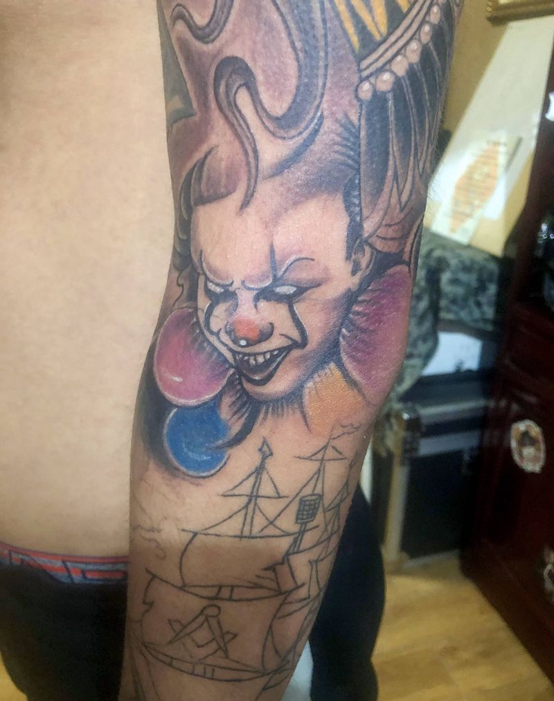 当前位置: 首页 >河北省邢台市纹身店-小黑刺青纹身专营店纹身图案>小丑纹身图片_手臂纹身图案