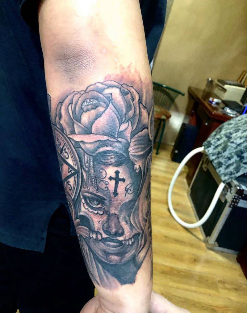 当前位置: 首页 >河北省邢台市纹身店-小黑刺青纹身专营店纹身图案>包小臂欧美覆盖纹身图片_手臂纹身图案