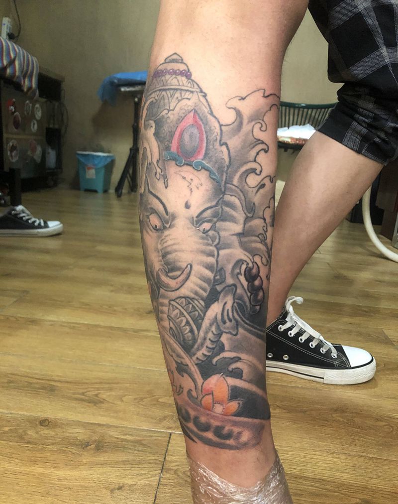 当前位置: 首页 >河北省邢台市纹身店-小黑刺青纹身专营店纹身图案>象神纹身图片_腿部纹身图案