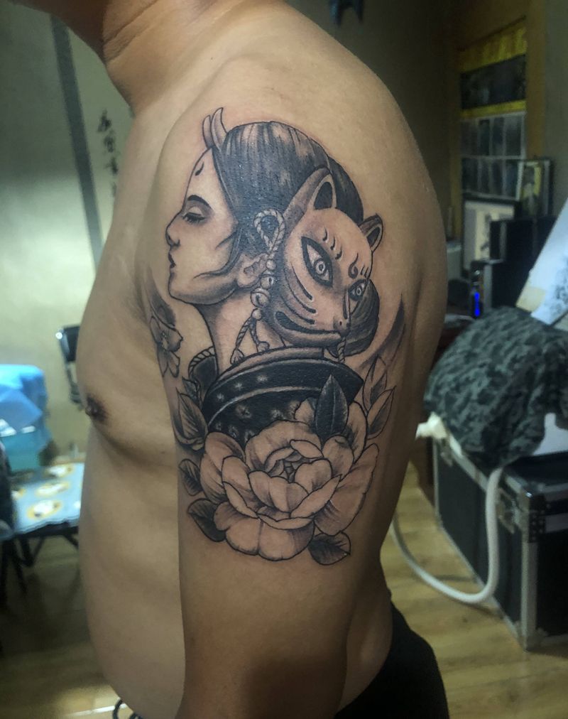 • 纹身吧推荐的披肩图腾半胛纹身图案作品展示
