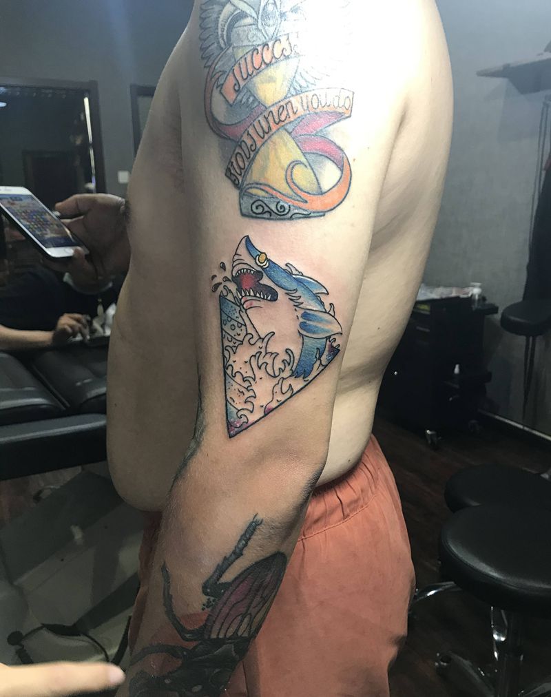 当前位置: 首页 >河北省保定市纹身店-梵音社刺青纹身图案>鲨鱼纹身图片_手臂New School纹身图案