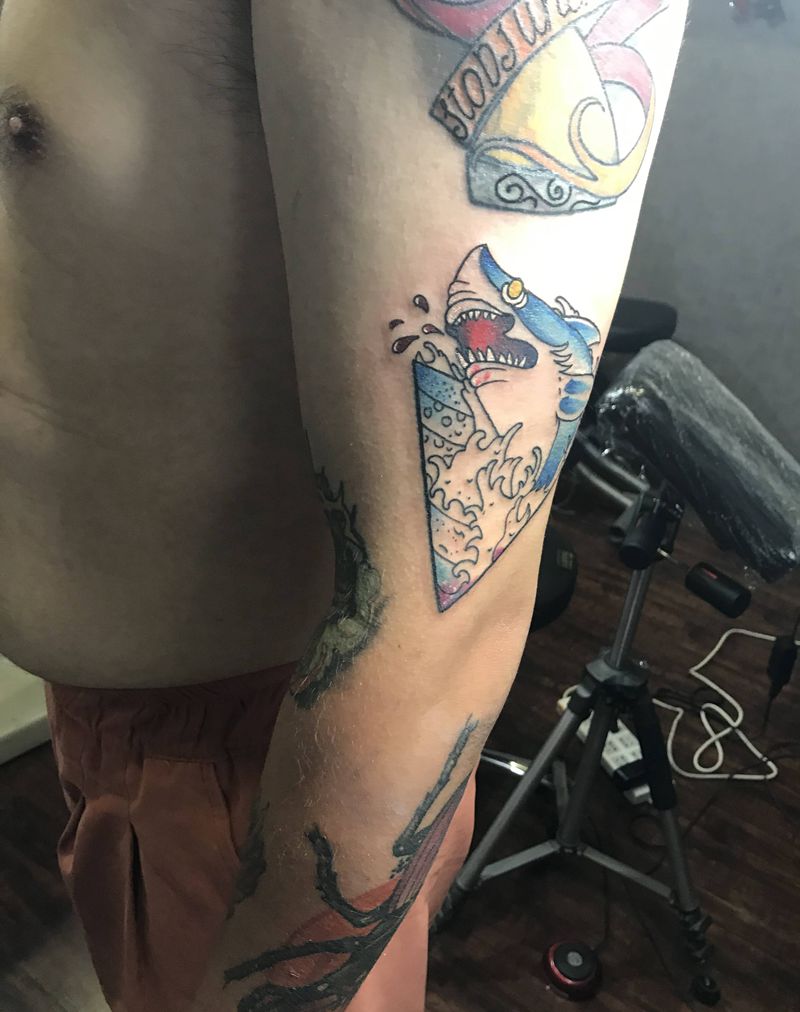 当前位置: 首页 >河北省保定市纹身店-梵音社刺青纹身图案>鲨鱼纹身图片_手臂New School纹身图案