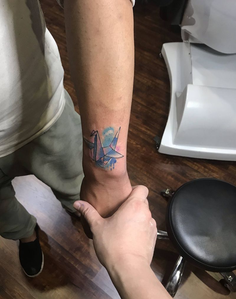 千纸鹤晕染纹身图片_手臂水彩纹身图案