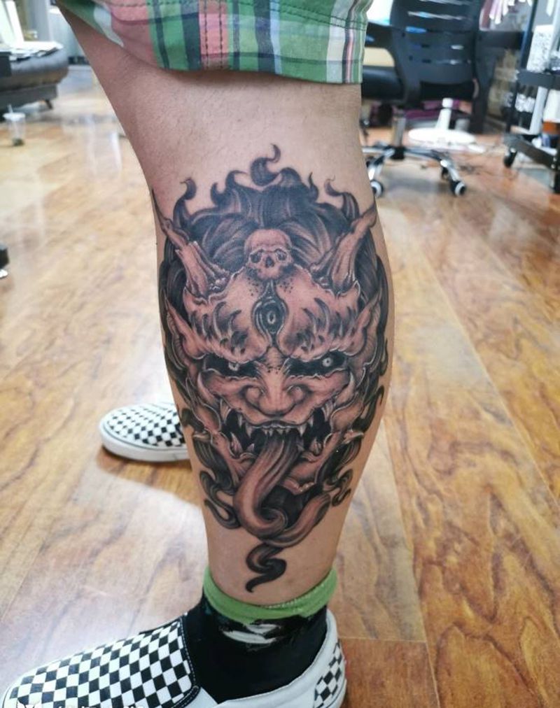 鬼怪纹身图片_腿部新传统欧美鬼怪纹身图案