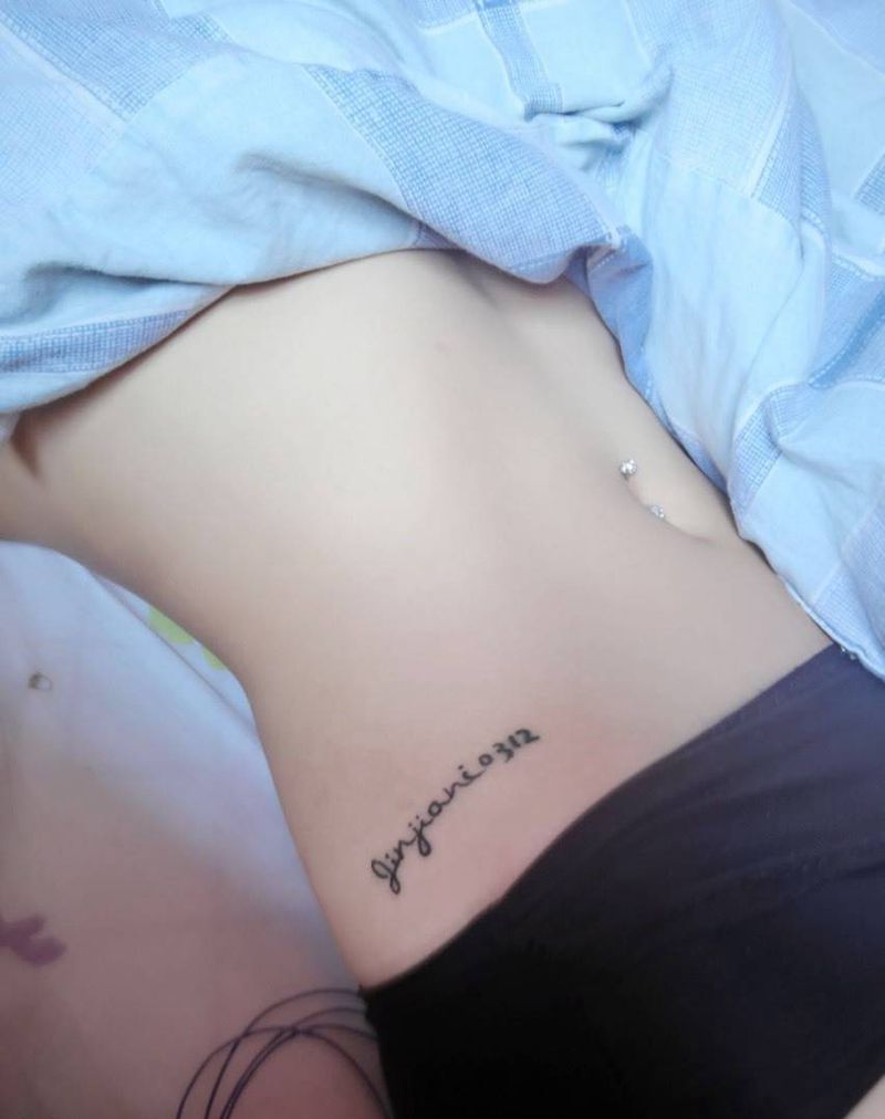 • T关于私处得爱!纹身图片_成品腹部清新字符图腾纹身图案