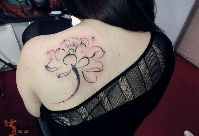 当前位置: 首页 >河北省张家口市纹身店-九州刺青纹身图案>水墨莲花纹身图片