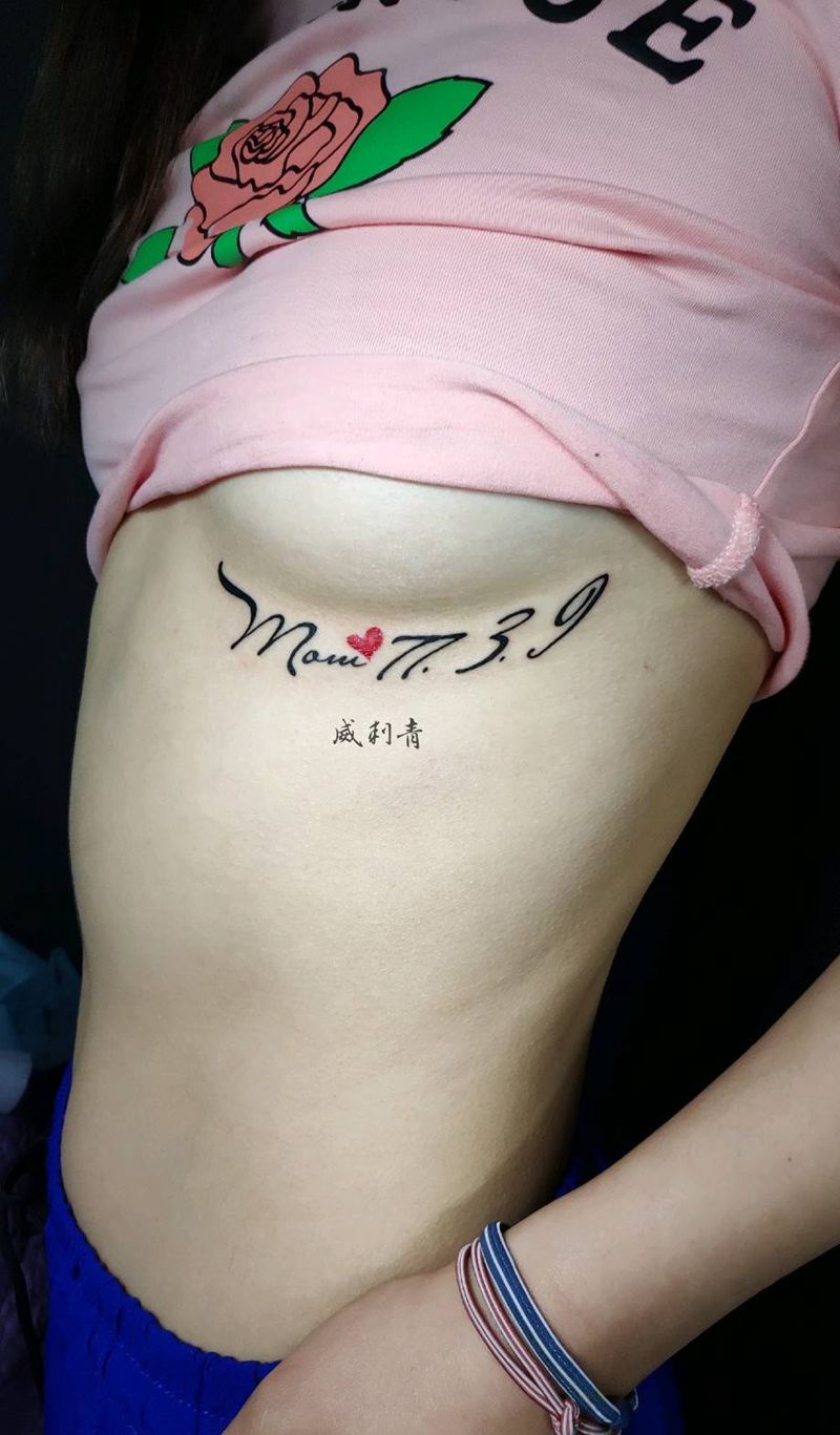 • T关于私处得爱!纹身图片_成品腹部清新字符图腾纹身图案