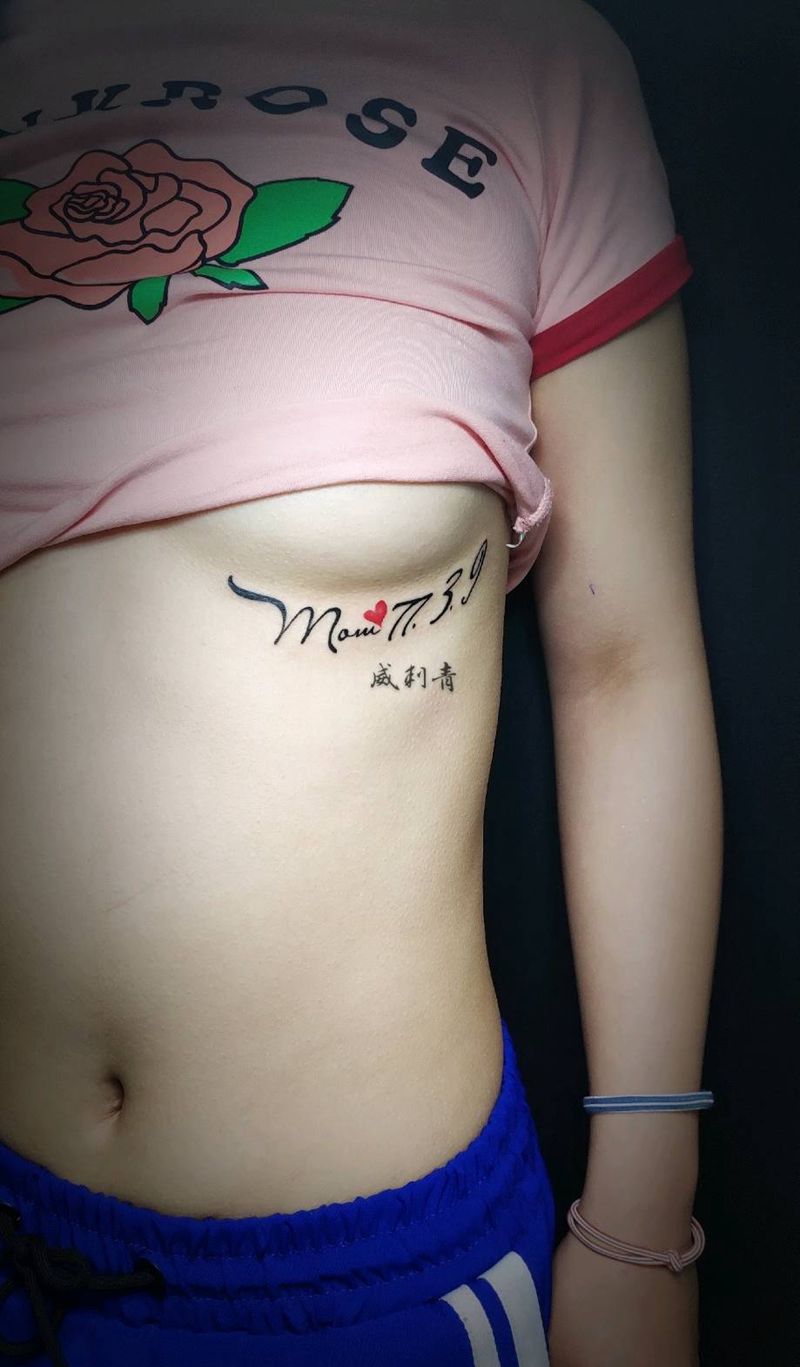 感恩纹身图片_胸部花体字英文胸下纹身图案