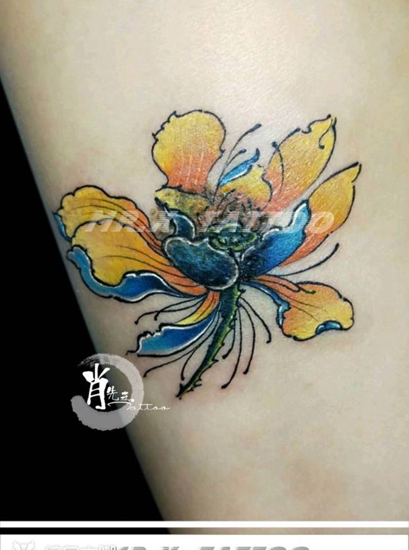 一组15张莲花纹身手