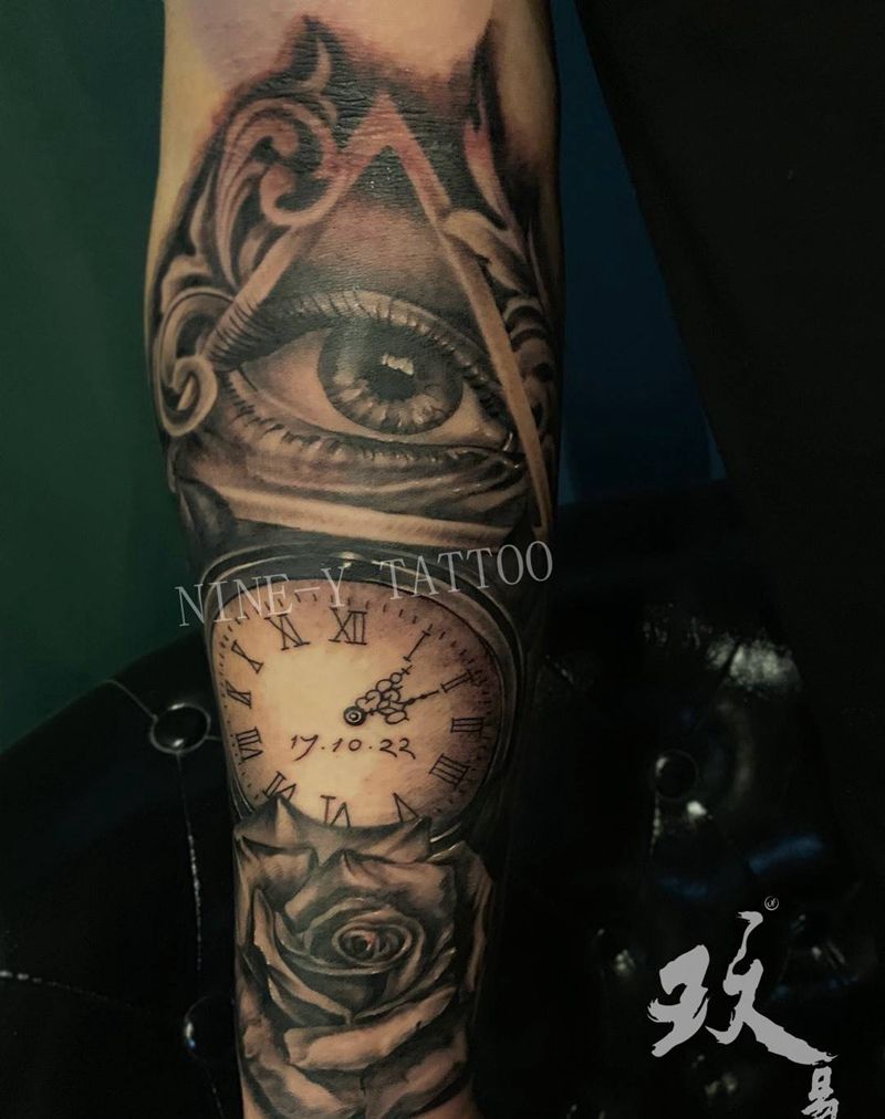 • 手背潮流时尚的玫瑰花眼睛纹身图案
