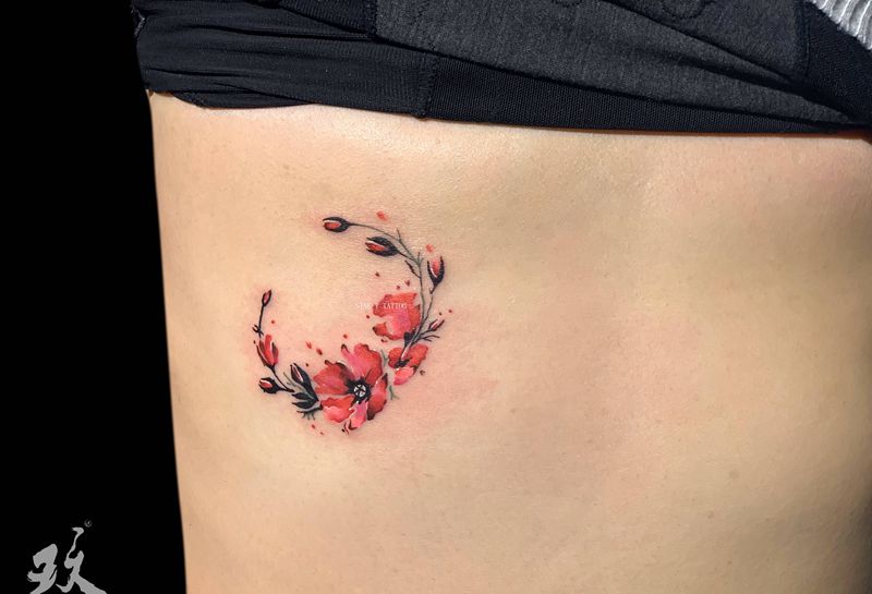 当前位置: 首页 >河北省张家口市纹身店-玖易刺青纹身图案>伤疤遮盖小花纹身图片_腹部水彩纹身图案