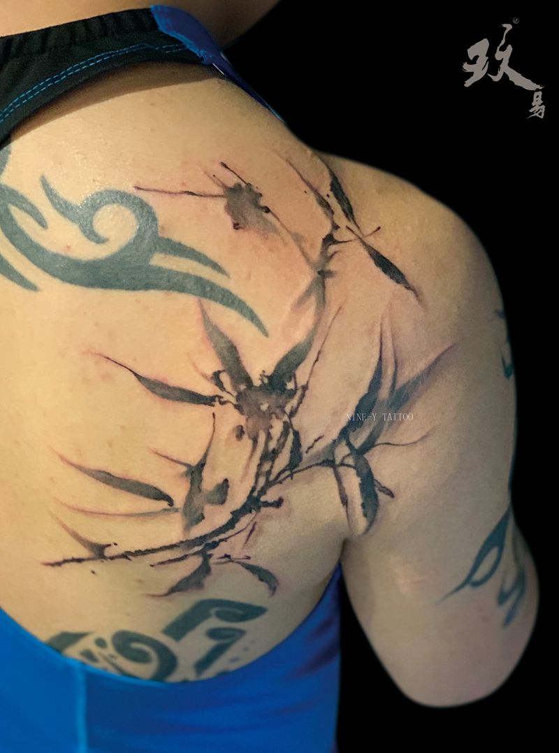 当前位置: 首页 >河北省张家口市纹身店-玖易刺青纹身图案>竹纹身图片_背部水墨纹身图案