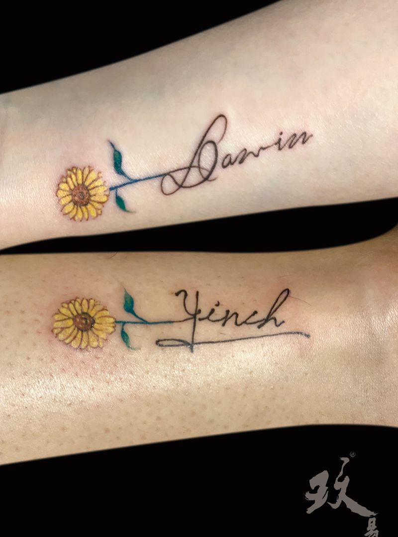 当前位置: 首页 >河北省张家口市纹身店-玖易刺青纹身图案>闺蜜向日葵纹身图片_手臂腿部纹身图案