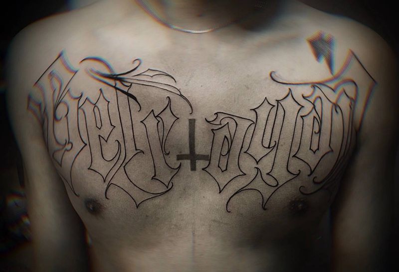 字纹身图片_胸部花体字纹身图案