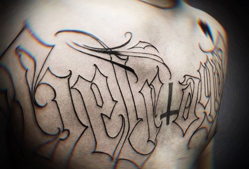 当前位置: 首页 >河北省承德市纹身店-0314刺青工作室纹身图案>字纹身图片_胸部花体字纹身图案