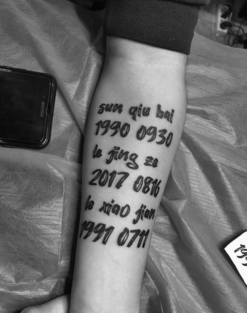 • T家庭图,一家四口生日纪念!纹身图片_手臂纹身图案