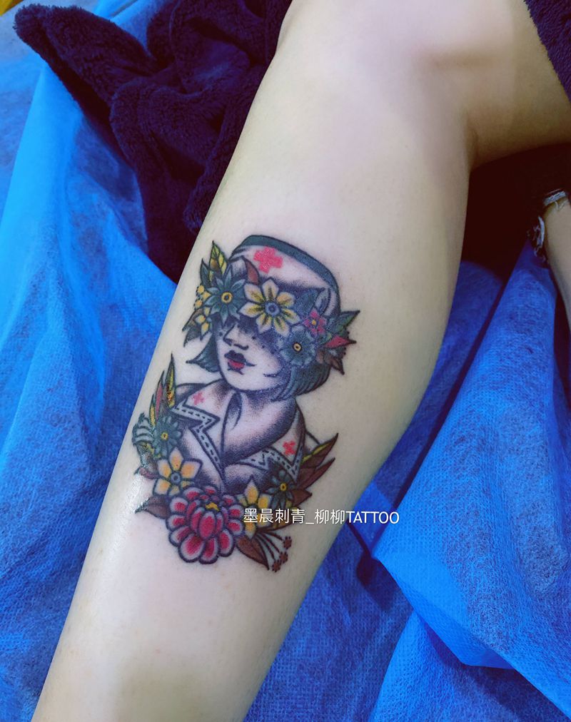 护士纹身图片_腿部Old School纹身图案