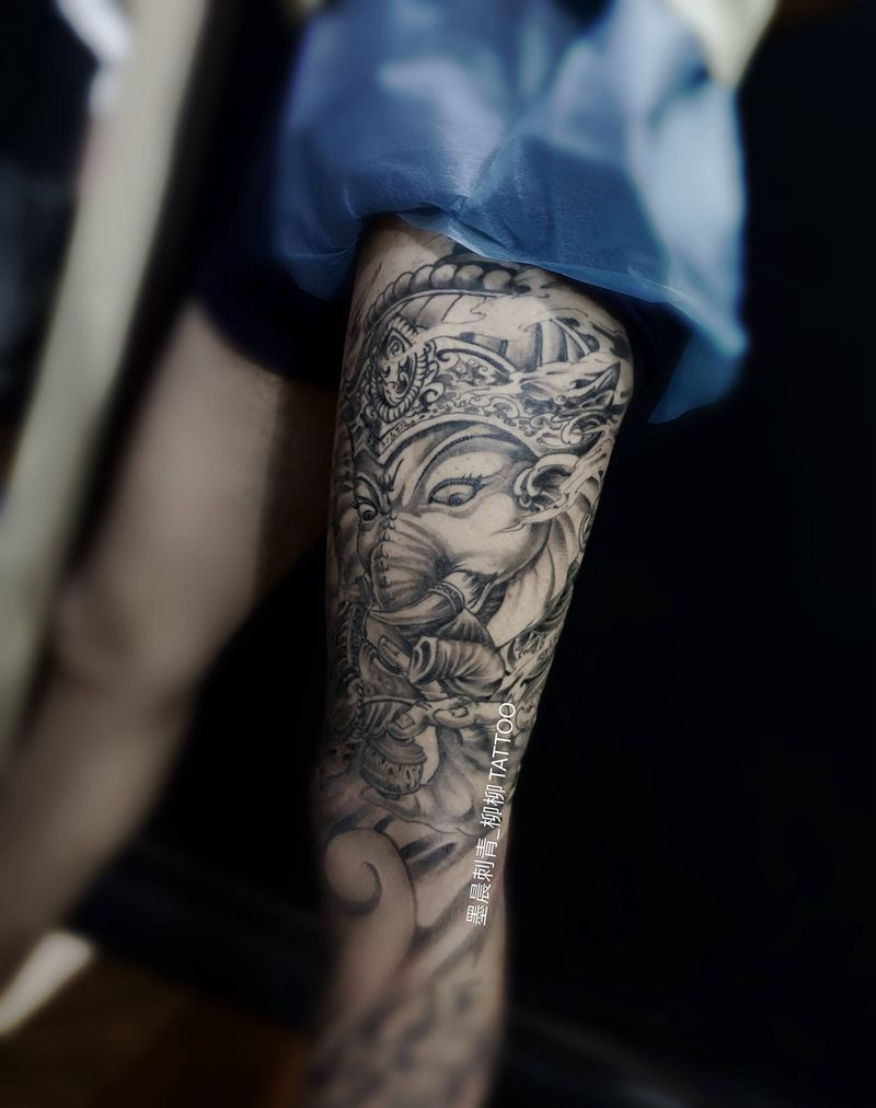 当前位置: 首页 >河北省沧州市纹身店-沧州墨晨刺青纹身图案>象神纹身图片_腿部纹身图案