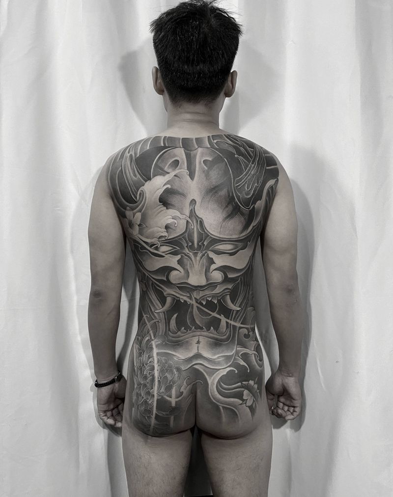 • 黑灰满背纹身图案