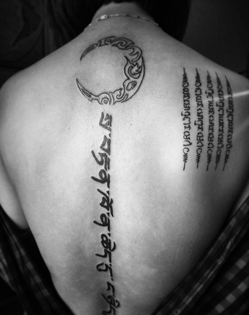 当前位置: 首页 >河北省廊坊市纹身店-霄刺青纹身图案>脊柱梵文纹身图片