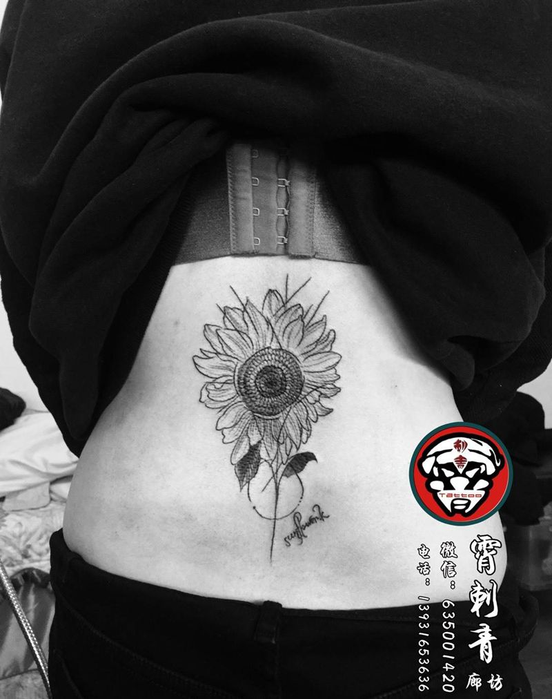 向日葵纹身图片_植物写实清新腰部成品纹身图案