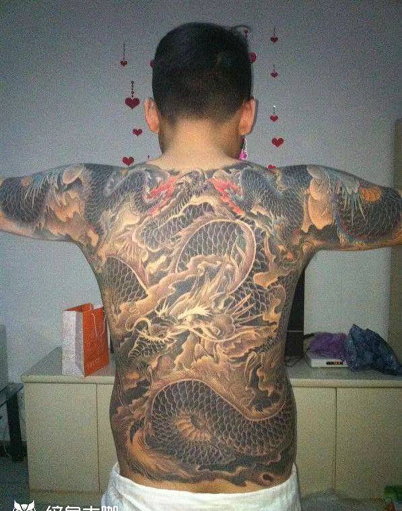 • T云龙九郎纹身图片_背部老传统云龙九郎纹身图案
