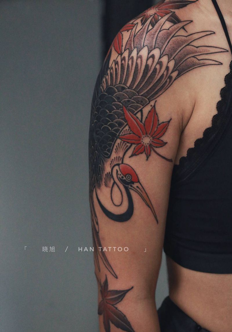 当前位置: 首页 >河北省廊坊市纹身店-韩刺青纹身工作室纹身图案>鹤纹身图片_手臂Old School新传统纹身图案