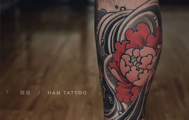 • T网红王老大花腿龙纹身图片_腿部新传统纹身图案