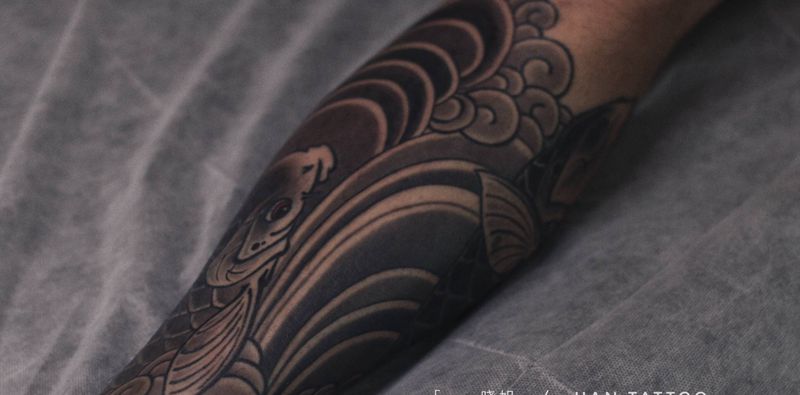 当前位置: 首页 >河北省廊坊市纹身店-韩刺青纹身工作室纹身图案>日式鱼包小腿纹身图片_腿部新传统纹身图案