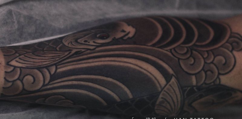 当前位置: 首页 >河北省廊坊市纹身店-韩刺青纹身工作室纹身图案>日式鱼包小腿纹身图片_腿部新传统纹身图案