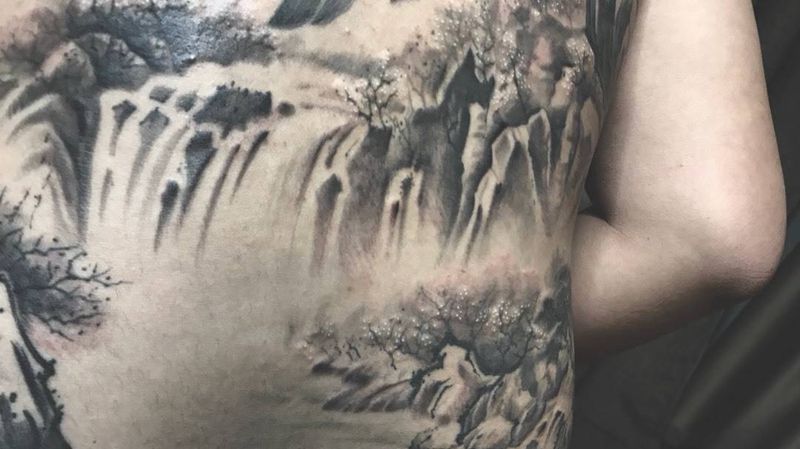 黑灰满背纹身图案