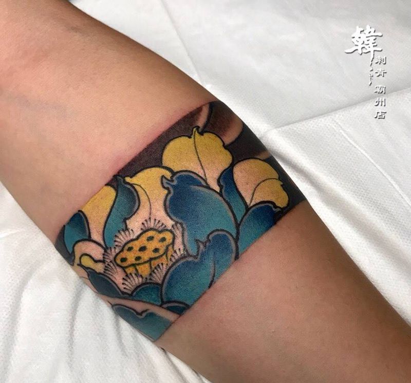 一组15张莲花纹身手