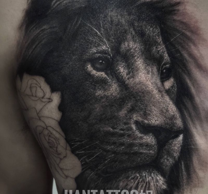 当前位置: 首页 >河北省廊坊市纹身店-韩刺青纹身工作室纹身图案>写实狮子纹身图片_胸部欧美写实纹身图案