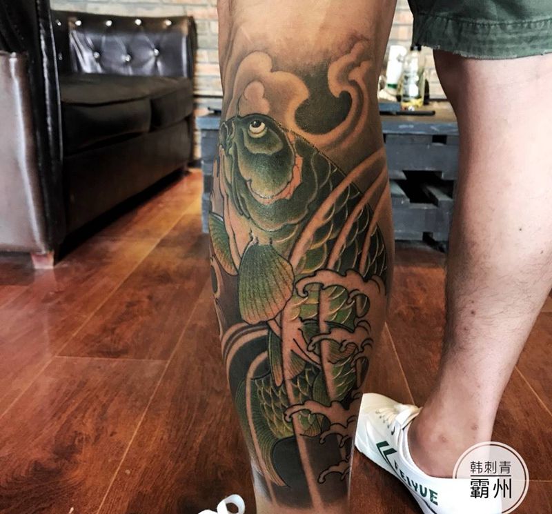 当前位置: 首页 >河北省廊坊市纹身店-韩刺青纹身工作室纹身图案>小腿鲤鱼纹身图片