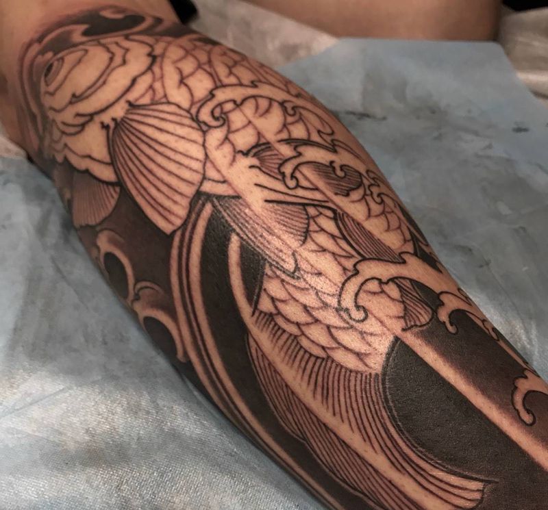 小腿鲤鱼(未完成)纹身图片