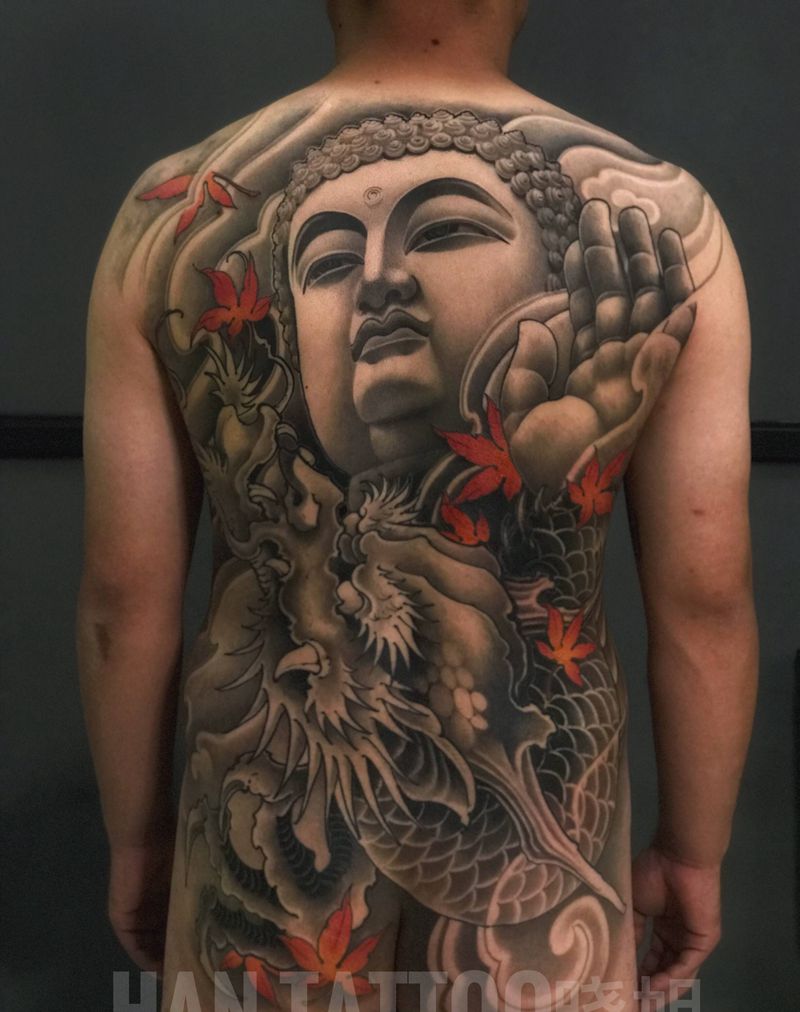 • 黑灰满背纹身图案