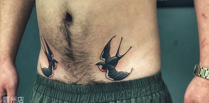燕子(old)纹身图片_腹部Old School纹身图案