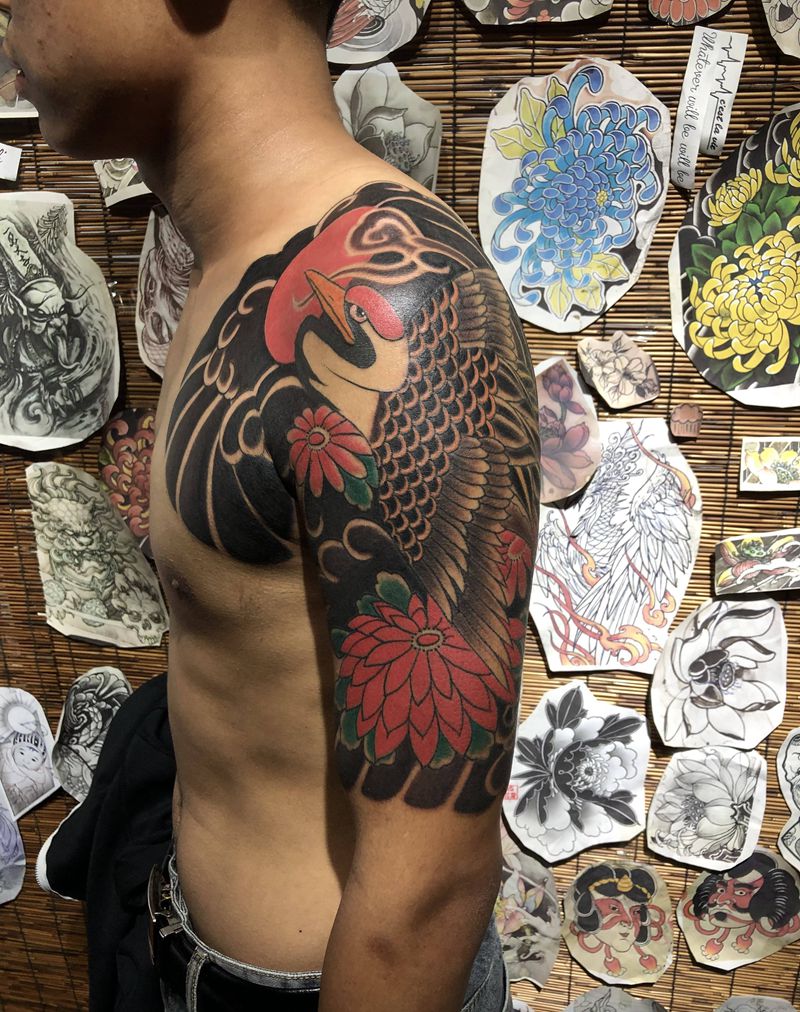 当前位置: 首页 >河北省沧州市纹身店-V5刺青纹身图案>半胛鹤纹身图片_手臂老传统鹤纹身图案