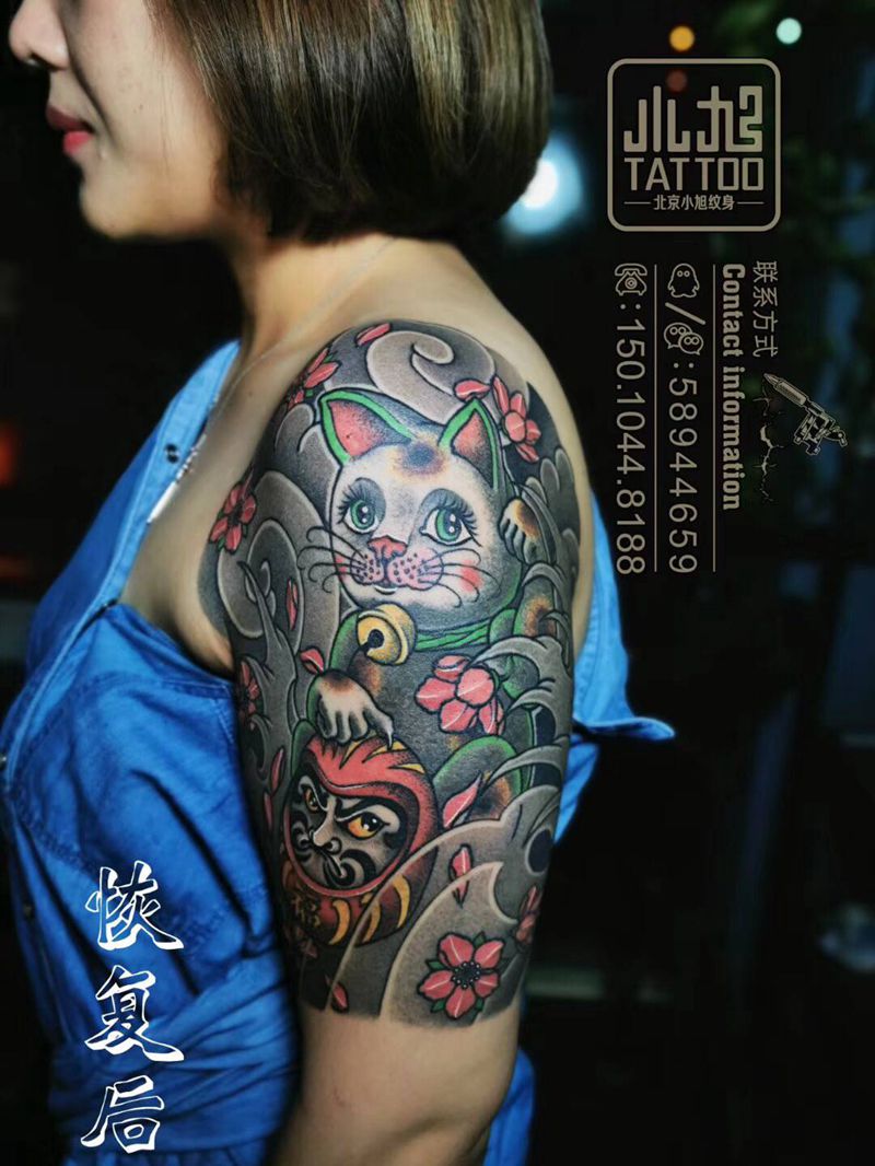 当前位置: 首页 >河北省沧州市纹身店-V5刺青纹身图案>招财猫达摩蛋纹身图片_手臂肩部老传统达摩蛋招财猫纹身图案