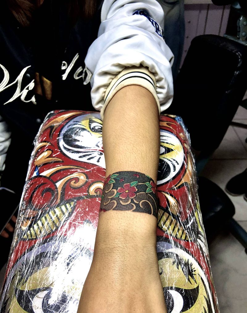 老传统樱花臂环纹身图片_手臂老传统樱花臂环纹身图案