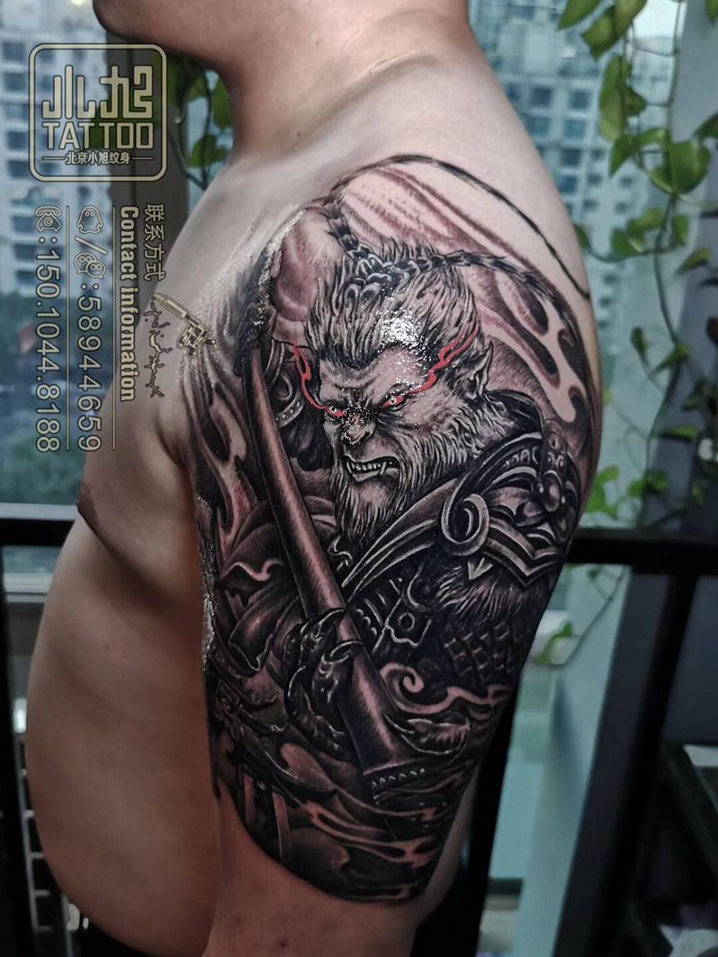 黑灰满背纹身图案