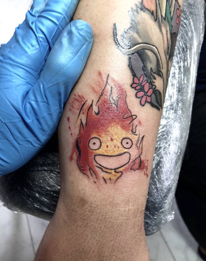 • T包小腿吹火男+阿多福纹身图片_腿部老传统新传统吹火男阿
