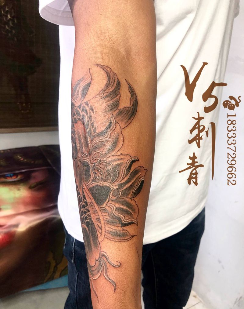 当前位置: 首页 >河北省沧州市纹身店-V5刺青纹身图案>荷花锦鲤纹身图片_手臂新传统锦鲤荷花纹身图案