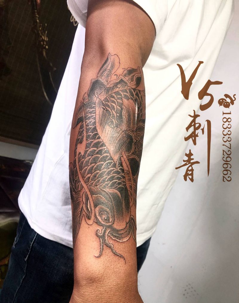 当前位置: 首页 >河北省沧州市纹身店-V5刺青纹身图案>荷花锦鲤纹身图片_手臂新传统锦鲤荷花纹身图案